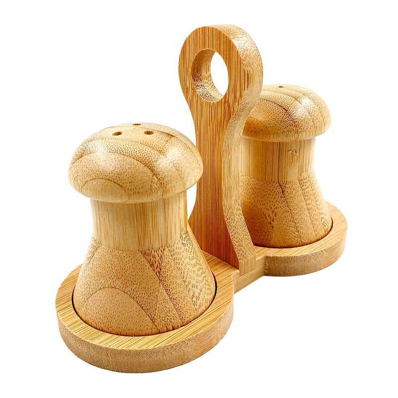 Kit Saleiro e Pimenteiro 3 Peças em Bambu Imporiente