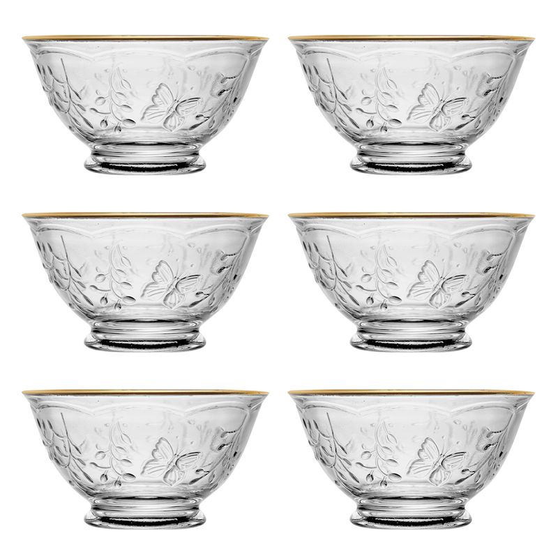 Jogo de Bowl New Butterfly C/ Fio Dourado 6 Peças 12x6,5cm em Cristal Lyor