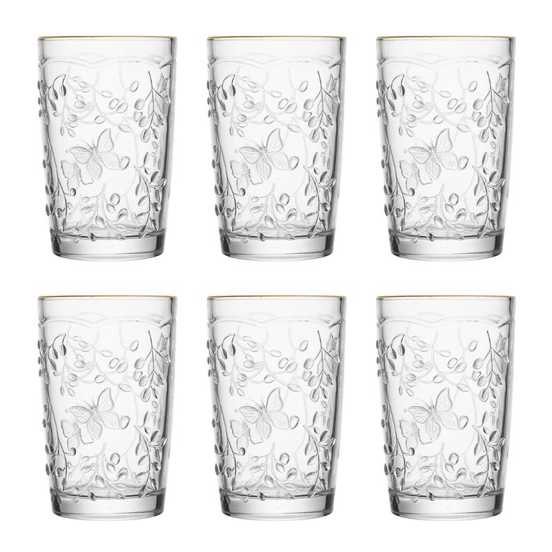 Jogo De Copos New Butterfly 6 Peças C/ Fio Dourado 330ml em Cristal Lyor