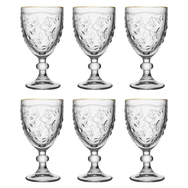 Jogo de Taças New Butterfly 6 Peças C/ Fio Dourado 320ml em Cristal Lyor