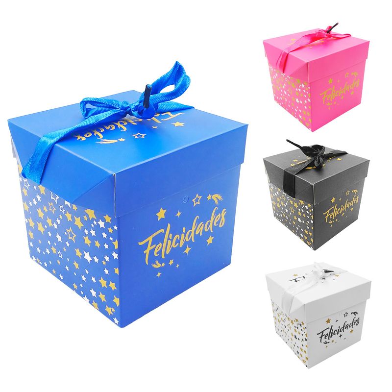 Caixa P/ Presente Felicidades 10x10cm em Papel Kit Girl