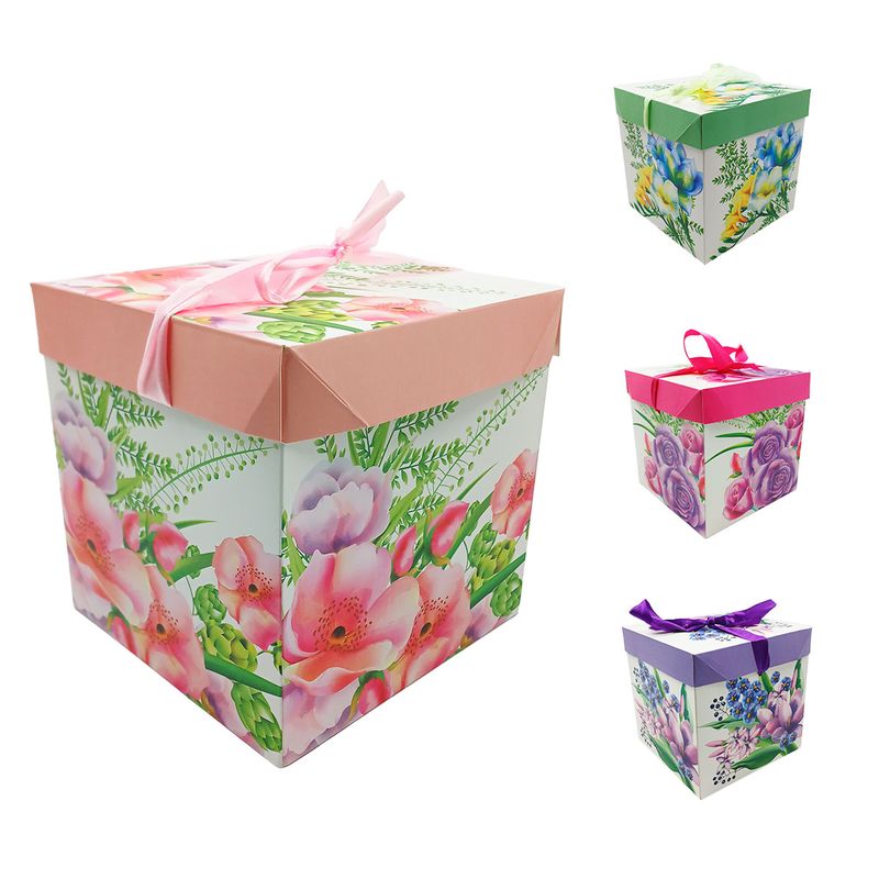 Caixa P/ Presente Floral 15x15cm em Papel Kit Girl