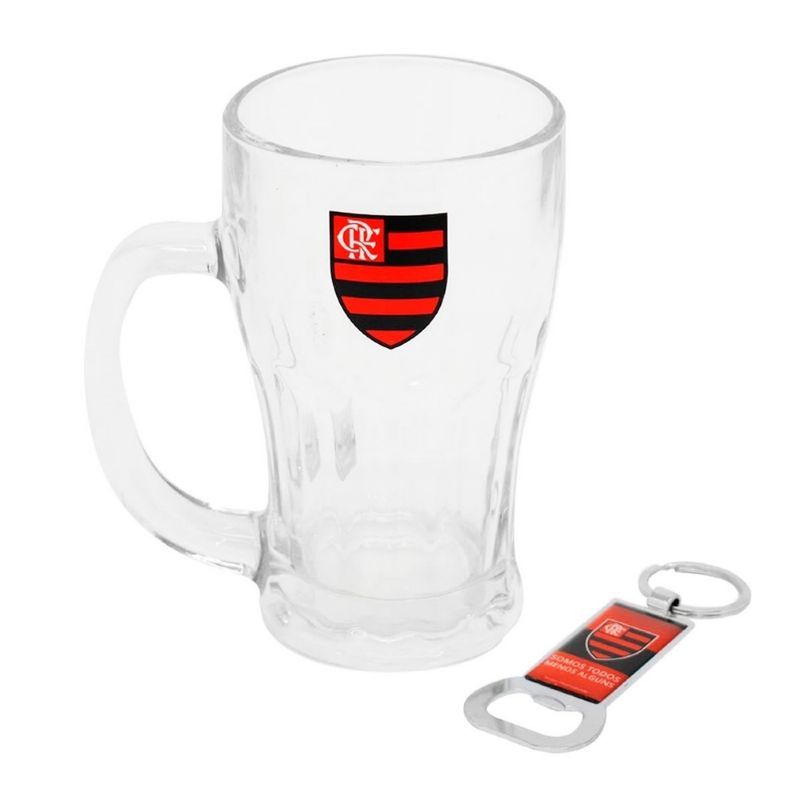 Caneca Chopp Flamengo C/ Abridor 450ml em Vidro Mileno