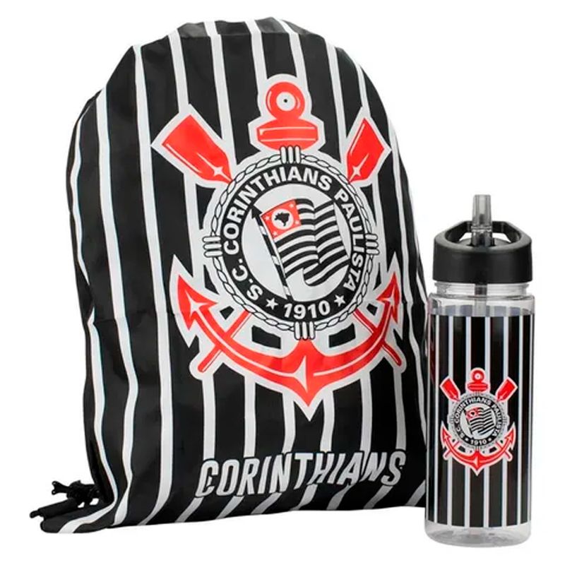 Kit Garrafa 450ml C/ Mochila Tipo Saco Corinthians Mileno