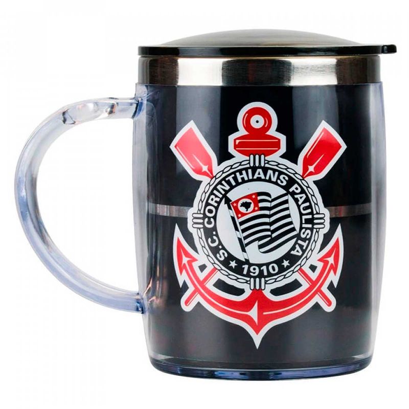 Caneca C/ Tampa Corinthians 450ml em Plástico/Inox Mileno