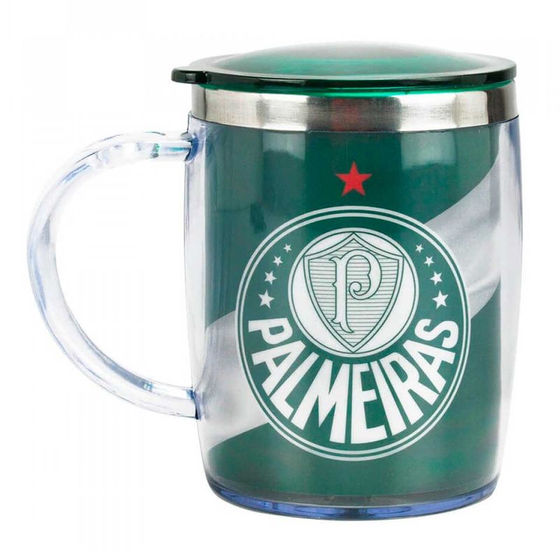 Caneca C/ Tampa Palmeiras 450ml em Plástico/Inox Mileno