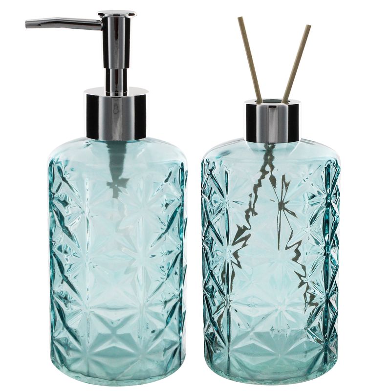 Kit Banheiro -Diamante -Decorativo Contém: 2 Peças Medidas: Porta Sabonete Líquido - 18,5cm e Difusor - 14cm Composição: Vidro e Plástico Sanxia Código de Barras: 6976583143127 Peso: 0,646Kg Ref.: BRSY14312
