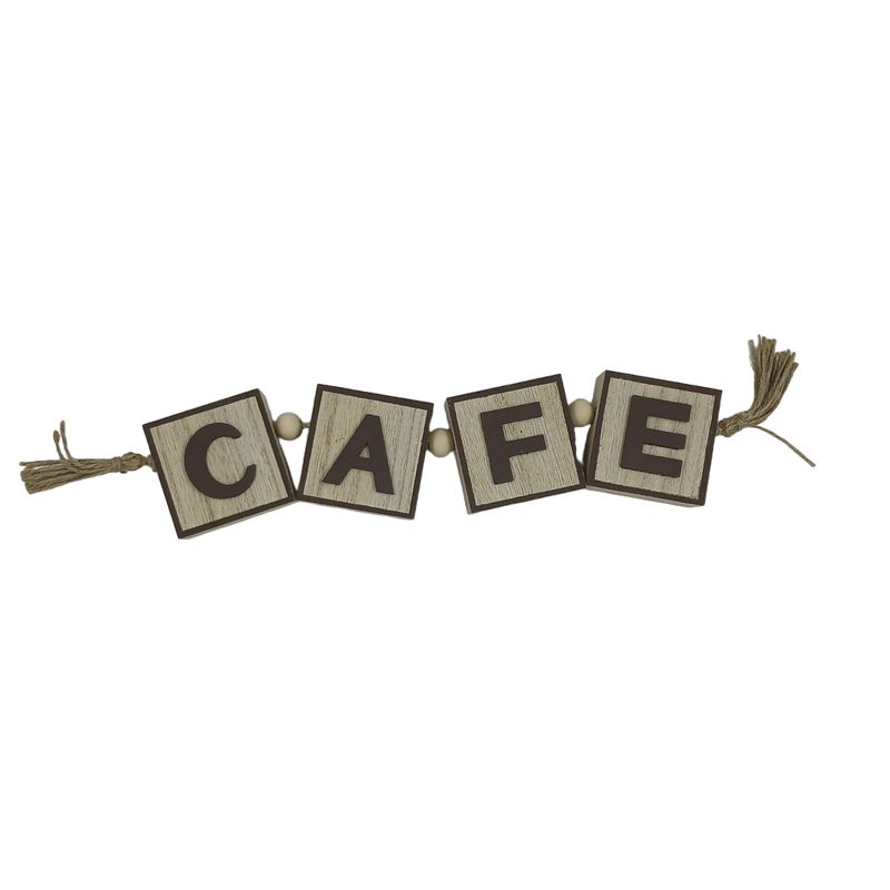 Palavra Café Decorativa 28,5cm em Madeira Casa Sorte