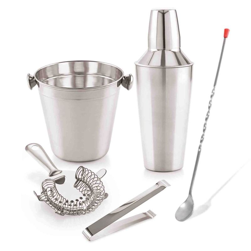 Kit Bar -Ideal P/ Drinks Contém: 5 Peças -1 Balde de Gelo -1 Coqueteleira 500ml -1 Pegador de Gelo -1 Colher Bailarina -1 Coador de Gelo Composição: Aço Inox Livon Código de Barras: 7891100011149 Peso: 0,368Kg Ref.: 1114