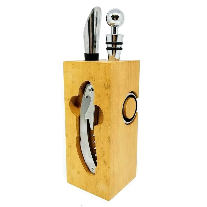 Kit P/ Vinho Medidas: 7x22cm Composição: MDF e Aço Inox Livon Código de Barras: 7891100044291 Peso: 0,612 Kg Ref: 4429