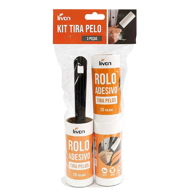 Rolo Auto Adesivo Tira Pelos 3 Peças 60 Folhas Livon