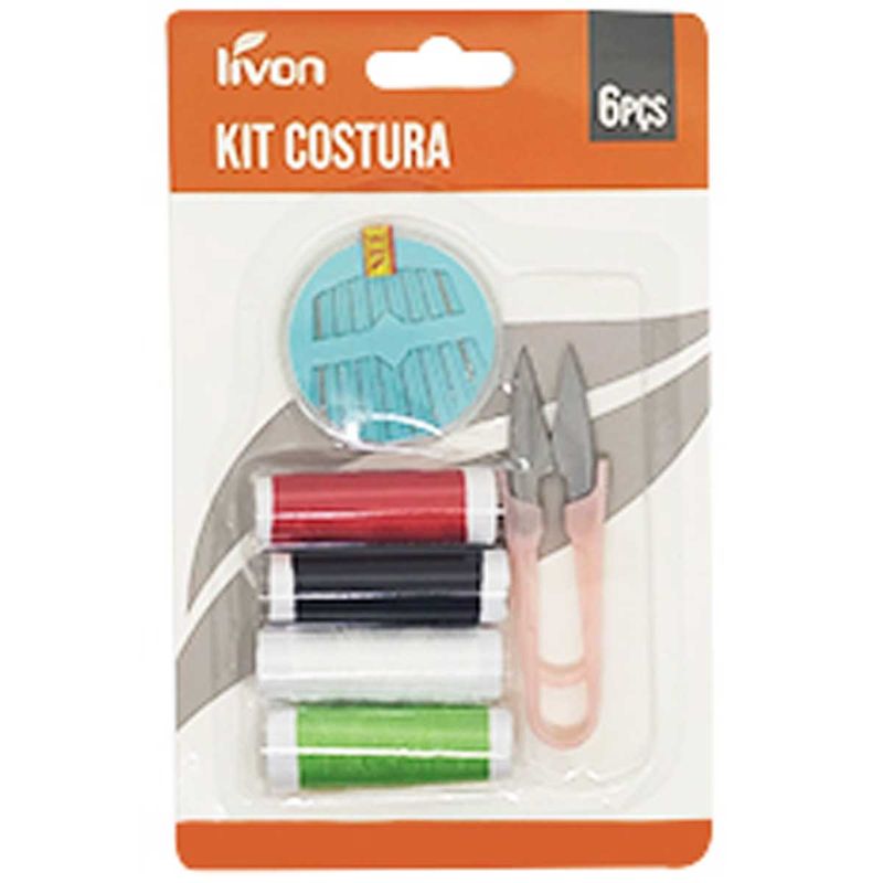 Kit de Costura Contém: 6 Peças -1 Disco de Agulhas -1 Tesoura de Arremate -4 Linhas em Cores Sortidas Composição: Plástico, Metal e Linha Livon Código de Barras: 7891100051268 Peso: 0,030Kg Ref.: 5126