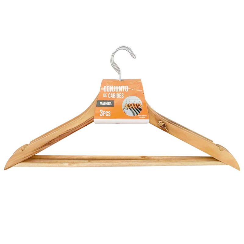 Jogo de Cabides 3 Peças 44x22cm em Madeira Livon