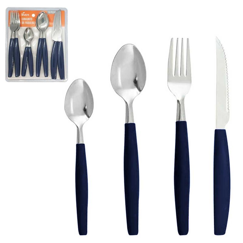Jogo de Talheres Color 16 Peças em Aço Inox Livon