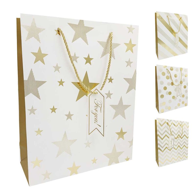 Sacola P/ Presente -Pontilhado -Modelos Sortidos Medidas: 32x26x10cm Composição: Papel Livon Código de Barras: 7891100058670 Peso: 0,073Kg Ref.: 5867