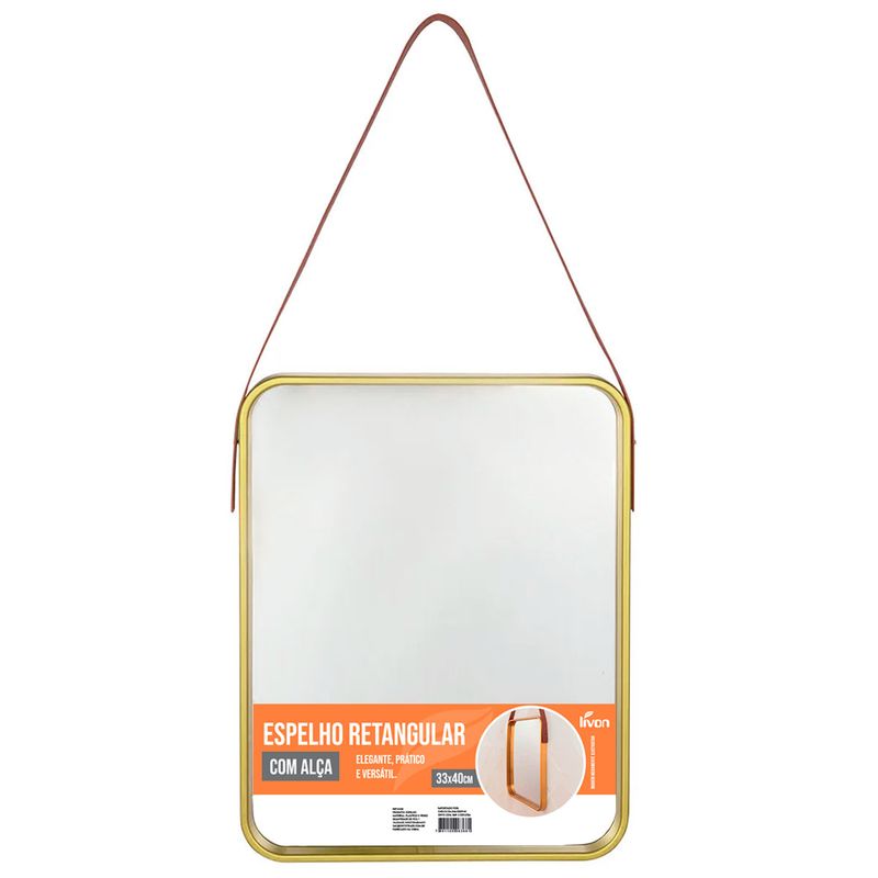 Espelho de Parede Retangular C/ Alça 33x40cm em Plástico Livon
