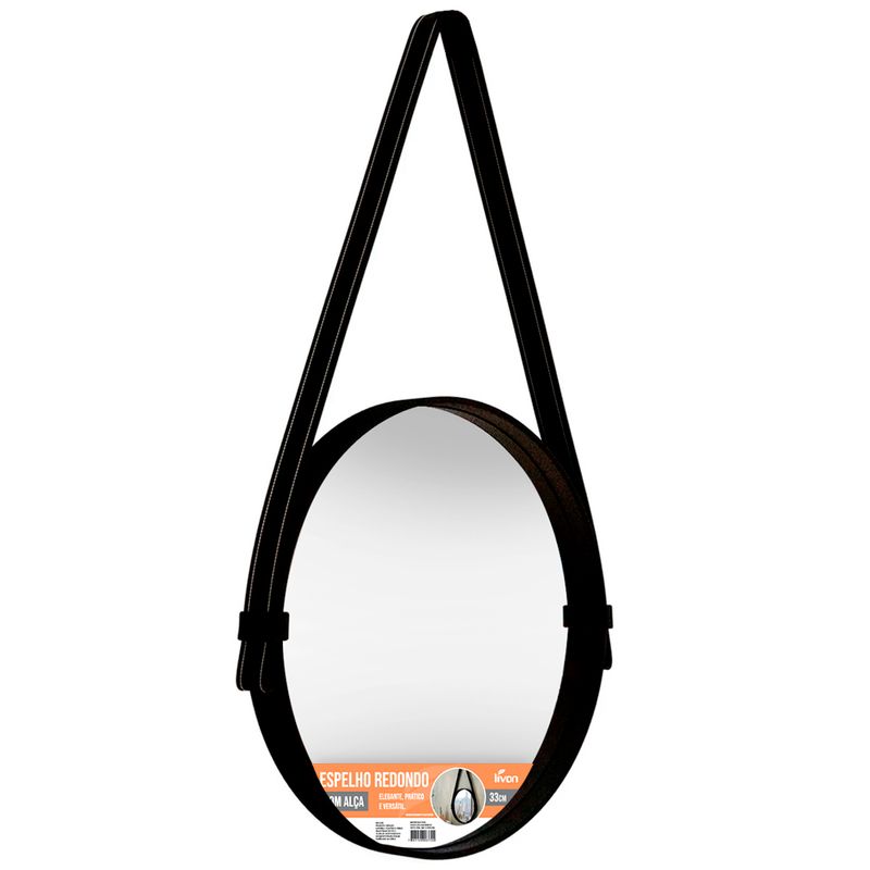 Espelho de Parede Redondo C/ Alça 33cm em Plástico Livon