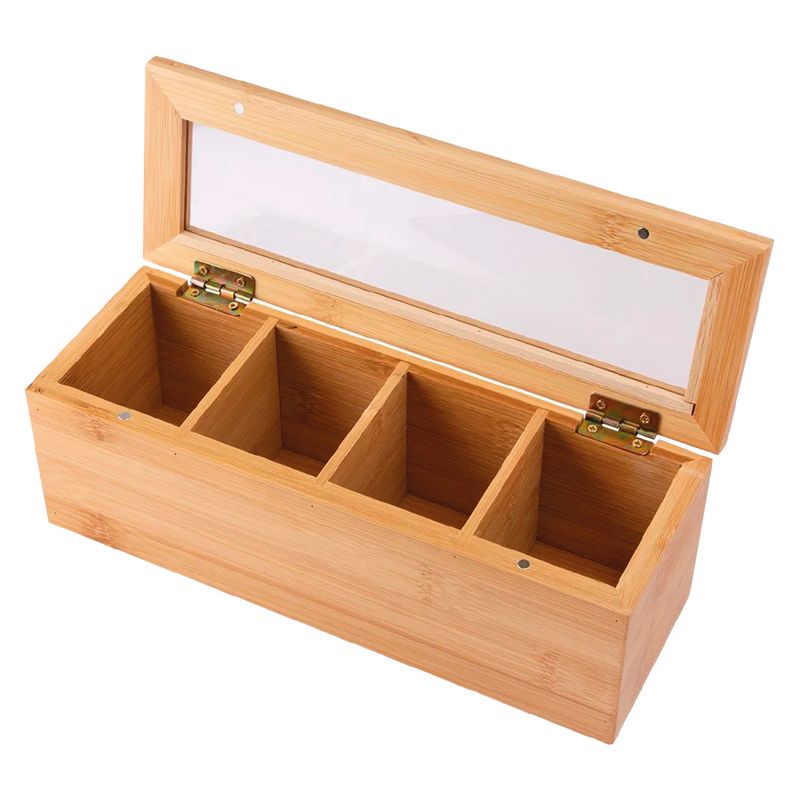Caixa De Chá 4 Divisórias 26x9x9cm em Bambu Livon