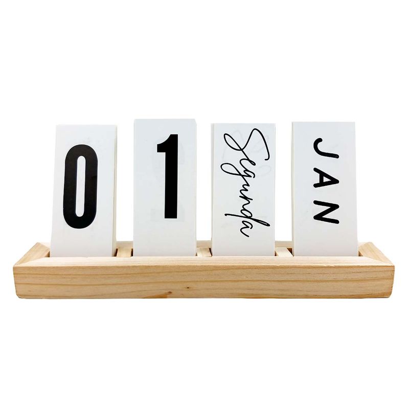 Calendário de Mesa Decorativo 24cm em Madeira Livon