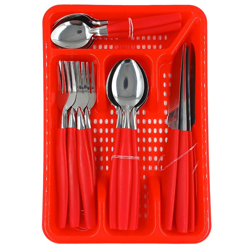Contém: 24 Peças - 6 Colheres de Sopa, 6 Colheres de Sobremesa, 6 Facas e 6 Garfos