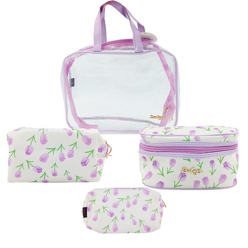 Kit Nécessaire Flores 4 Peças 29x21,5cm em Poliéster Rubys