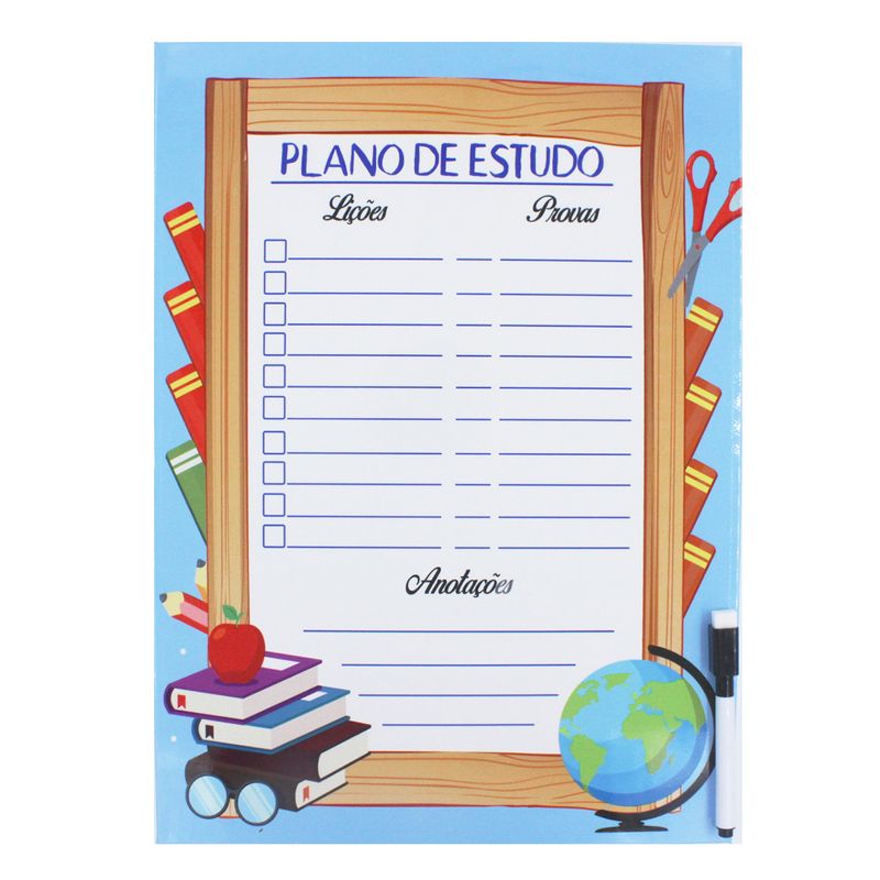 Quadro Planejamento - Plano de Estudo - Acompanha Caneta Medidas: 29x40cm Composição: Metal Cor: Colorido JB Criações Código de Barras: 7891561410468 Peso: 0,581kg Ref: MP46