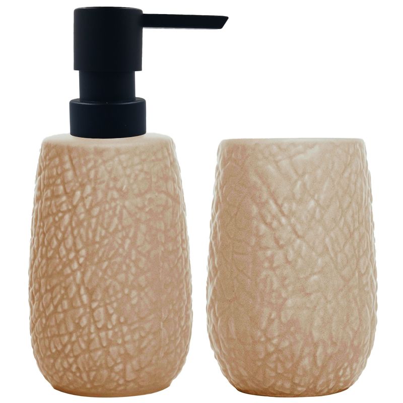 Kit Banheiro -Stone Contém: 2 Peças - 1 Porta Sabonete Líquido e 1 Pote Medidas: Porta Sabonete Líquido - 17x6,5cm e Pote - 10,5x7cm Composição: Cerâmica e Plástico Wolff Código de Barras: 7895730209006 Peso: 0,474Kg Ref.: 20900