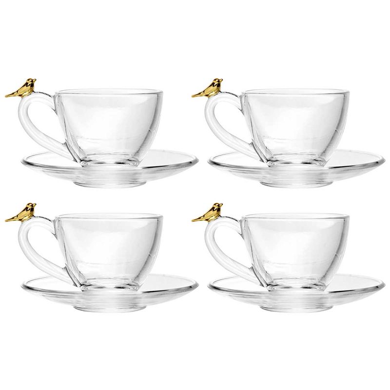 Jogo de Xícaras Golden Bird 8 Peças 80ml em Cristal Wolff