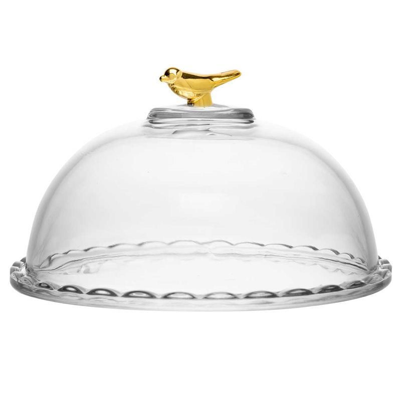 Queijeira C/ Tampa Golden Bird 20cm em Cristal Wolff