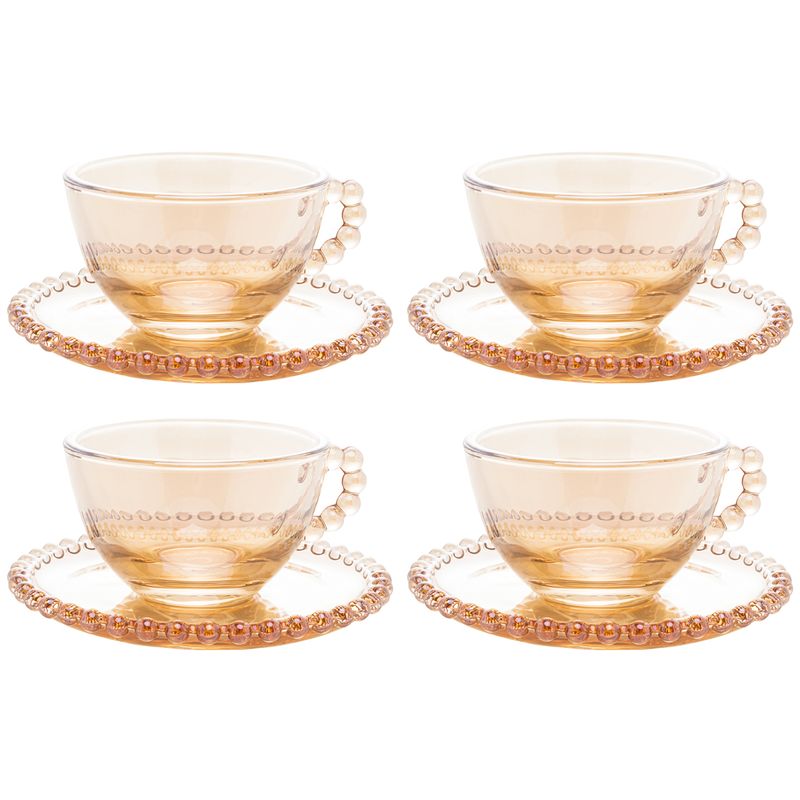 Conjunto de Xícaras Chá Cristal com Pires Pearl Âmbar 4 peças 180ml Rojemac