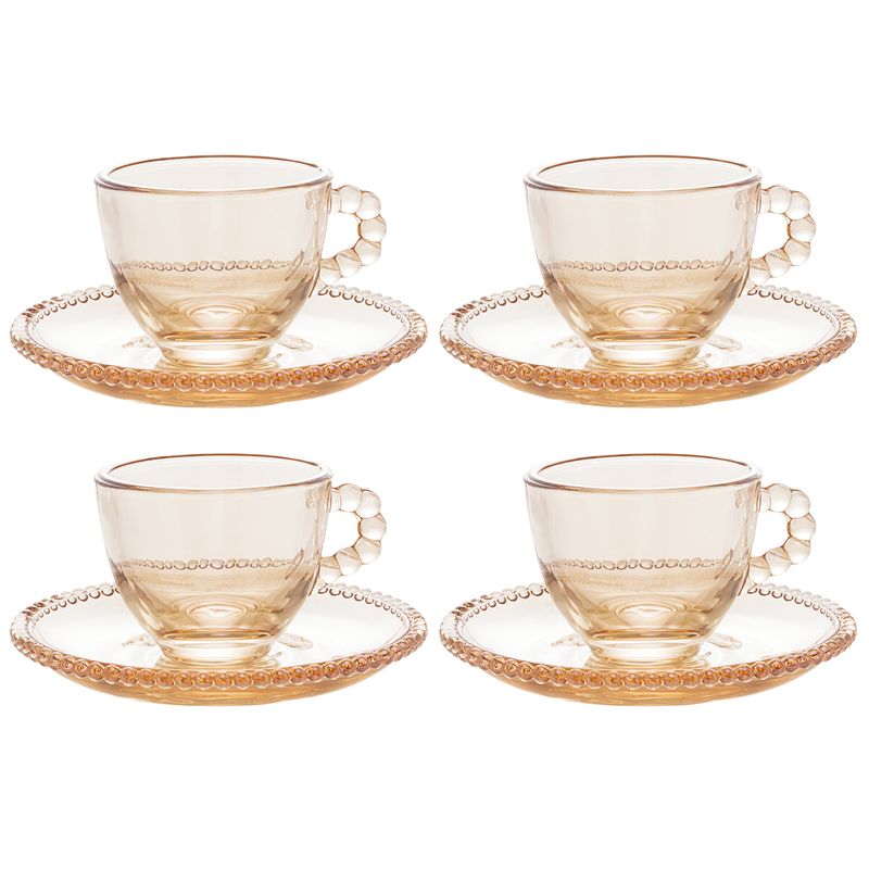Conjunto de Xícaras Café Cristal com Pires Pearl Âmbar 80ml Rojemac