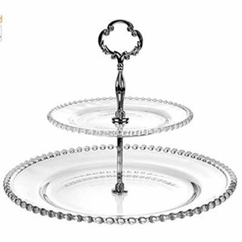 Prato Duplo Cristal P/Doces Pearl 19x32x24cm Rojemac