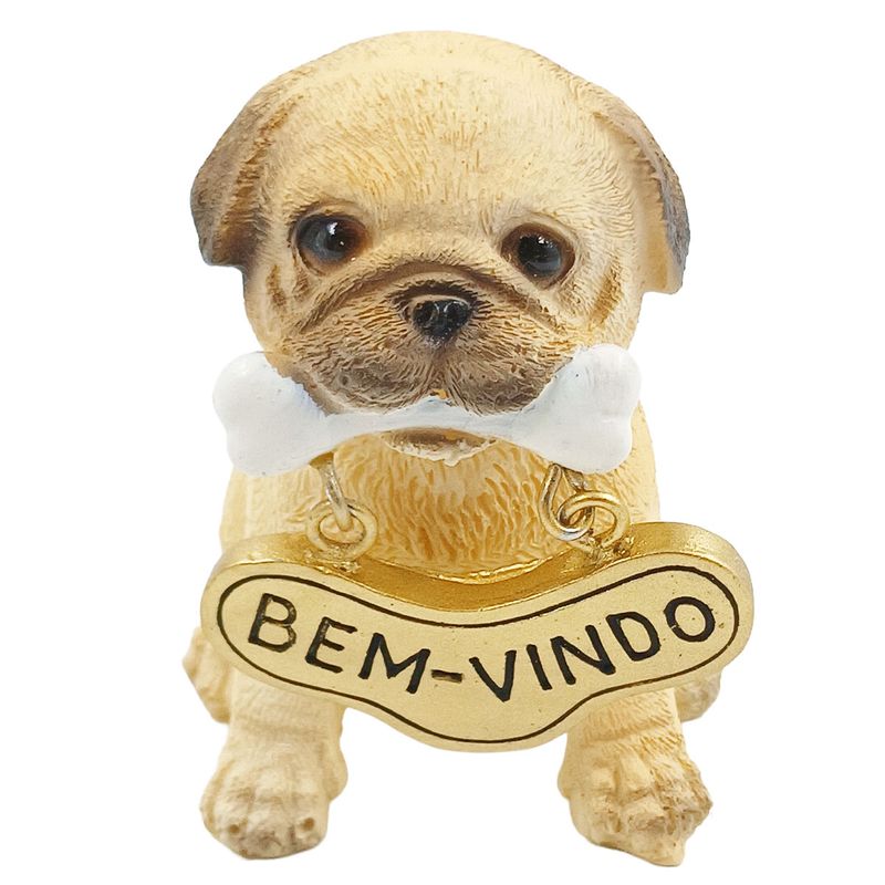 Cachorro C/ Placa Bem-Vindo 8,5cm em Resina Youbai