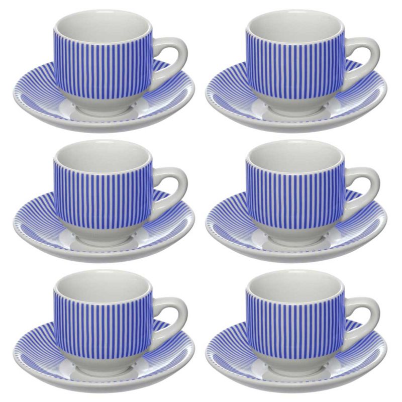 Jogo de Xícaras Café -Acqua -Detalhe Listrado Contém: 12 Peças - 6 Xícaras e 6 Pires Capacidade: 90ml Composição: Porcelana Hauskraft Código de Barras: 7897186046440 Peso: 1,356Kg Ref.: JGCH076