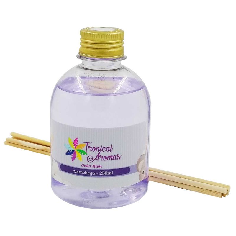 Difusor de Aromas * Linha: Baby * Tema: Aconchego - 6 Varetas Capacidade: 250ml Composição: Plástico Cor: Roxo Tropical Aromas Código de Barras:7898343707044 Ref: Aconchego Peso: 0,244 Kg