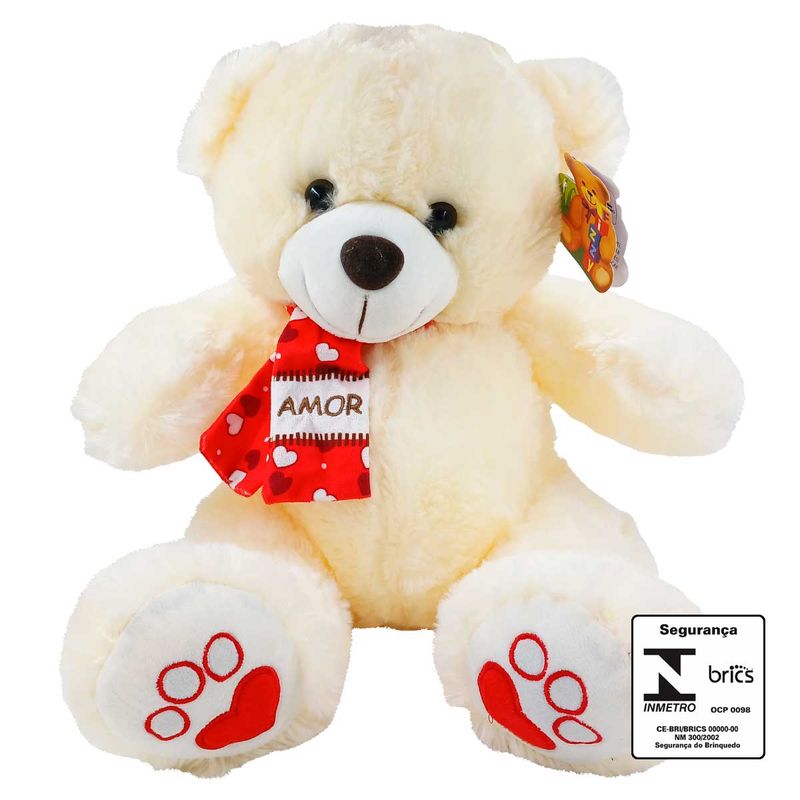 Urso de Pelúcia C/ Cachecol 33cm em Poliéster Fizzy