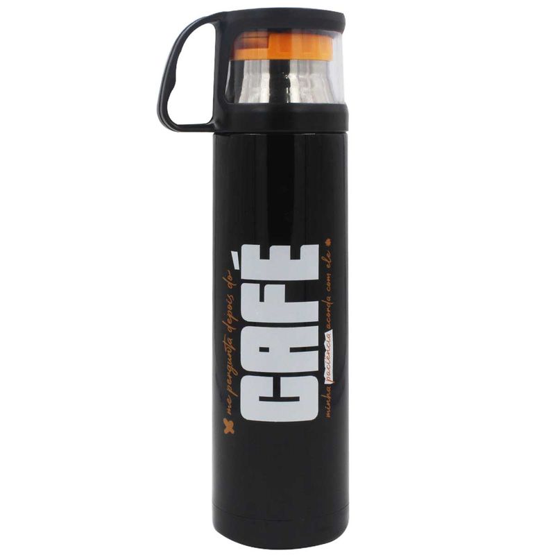 Garrafa Térmica Café -"Me Pergunta Depois do Café, Minha Paciência Acorda com Ele"-C/ CanecaCapacidade: Garrafa - 470ml e Caneca - 130mlComposição: Aço Inox e PlásticoDayimportCódigo de Barras: 7898486100153Peso: 0,294KgRef.: MB168