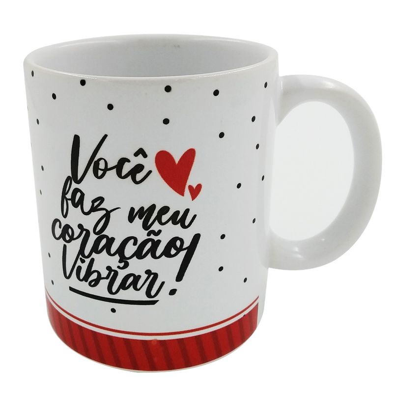 Caneca Frase: * Você Faz Meu Coração Vibrar! * Capacidade: 300ml Composição: Porcelana Sude Presentes Código de Barras: 7898715603882 Ref: CAN1142 Peso: 0,376 kg