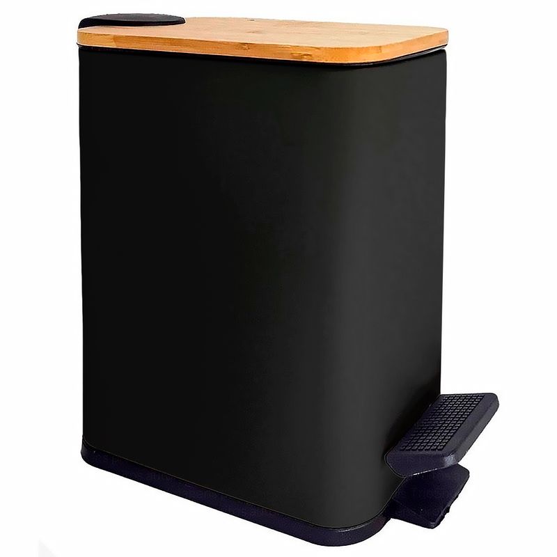 Lixeira Retangular C/ Tampa Bambu 5L em Metal DCarte