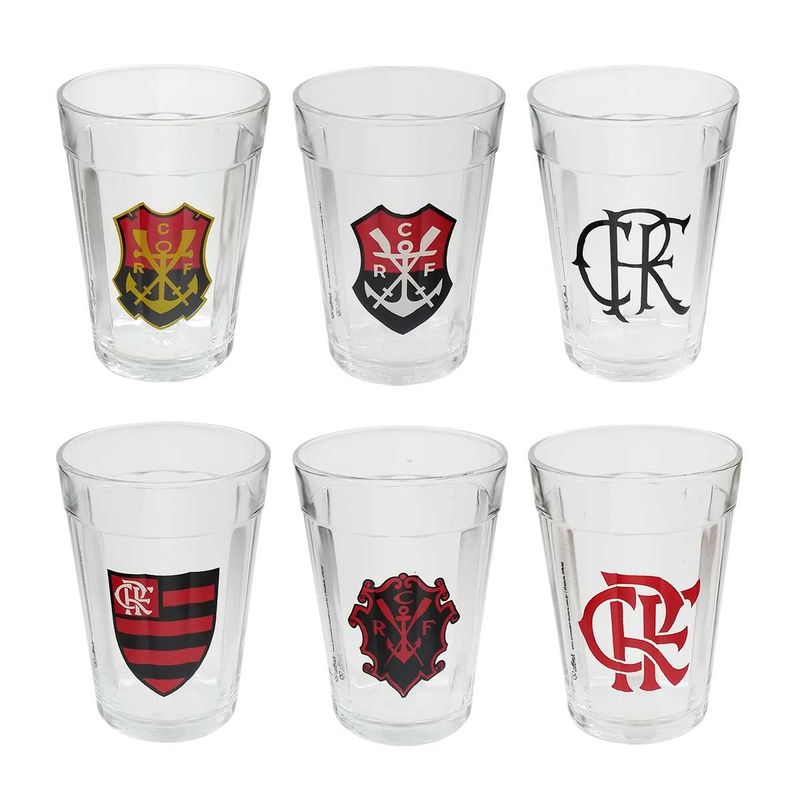 Jogo de Copos Flamengo 190ml 6 Peças em Vidro ALLMIX