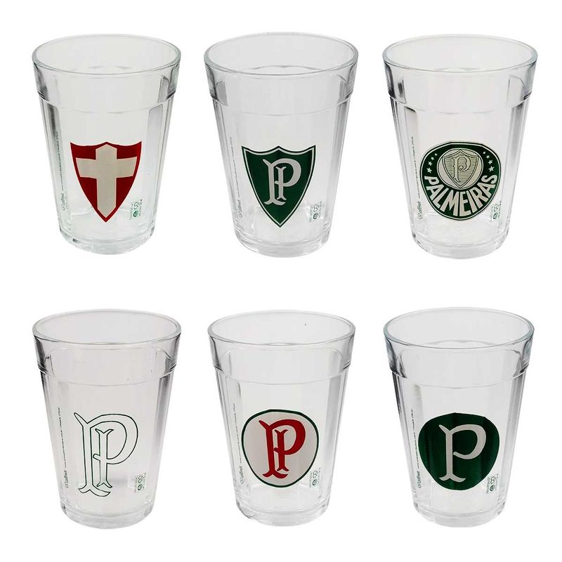 Jogo de Copos - Palmeiras Contém: 6 Peças Capacidade: 190ml Composição: Vidro ALLMIX Código de Barras: 7898919013838 Peso: 0,726Kg Ref.: 2916038