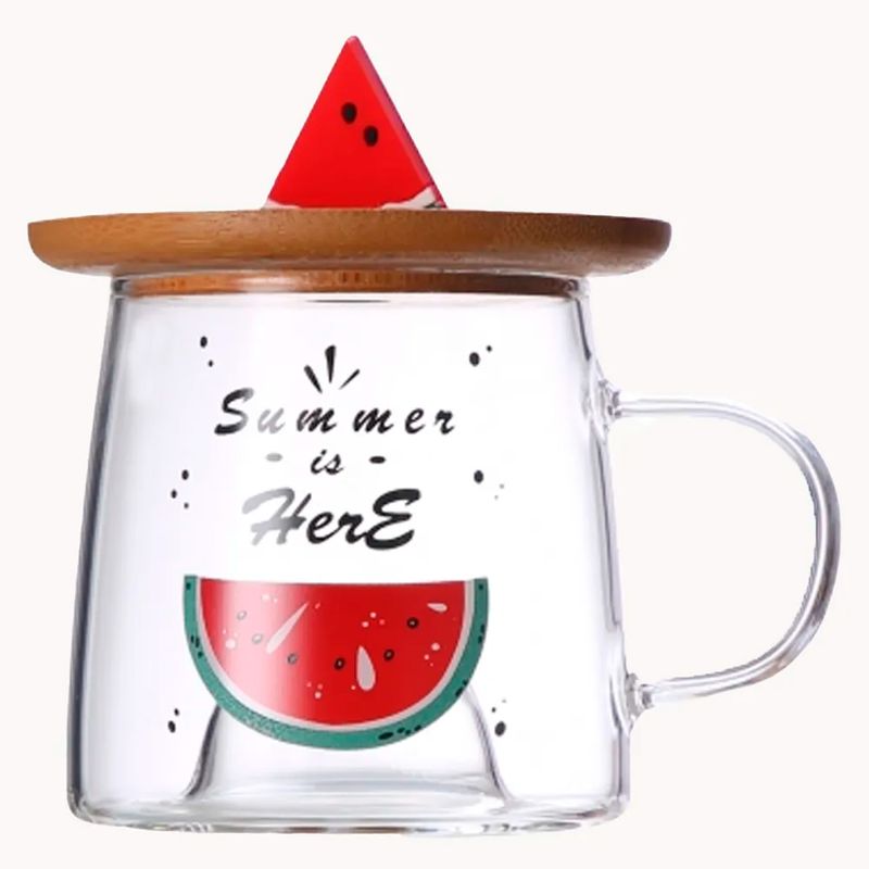 Caneca C/ Pires Bambu Melancia 280ml em Vidro Allmix