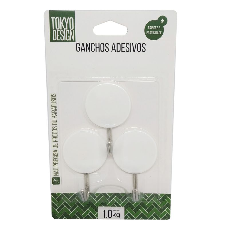 Jogo de Ganchos Adesivos 3 Peças Aço Inox /Plástico MultiArt Código de Barras: 7899183954155 Peso: 0,025 Kg Ref: HK42