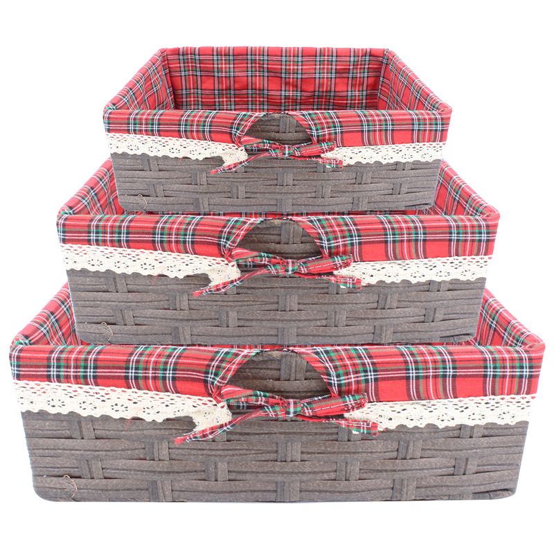 Cesto Decorativo 3 Peças em Plástico e Tecido Multiart