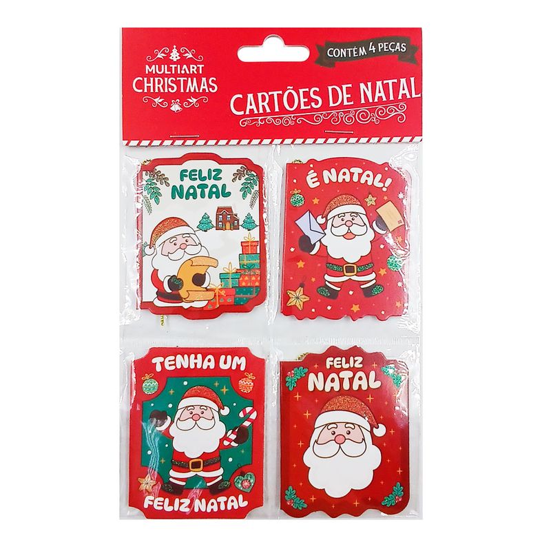 Cartão Natalino Decorativo 4 Peças em Papel Multiart