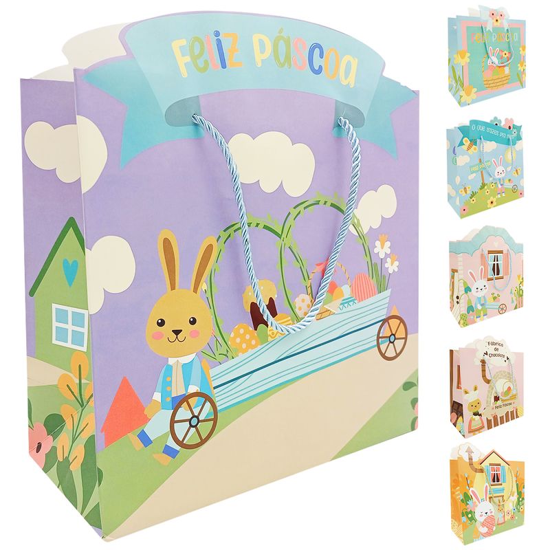 Sacola P/ Presente -Páscoa -Modelos Sortidos Medidas: 22x10x21cm Composição: Papel Multiart Código de Barras: 7899183990726 Peso: 00,52Kg Ref.: SCP0012