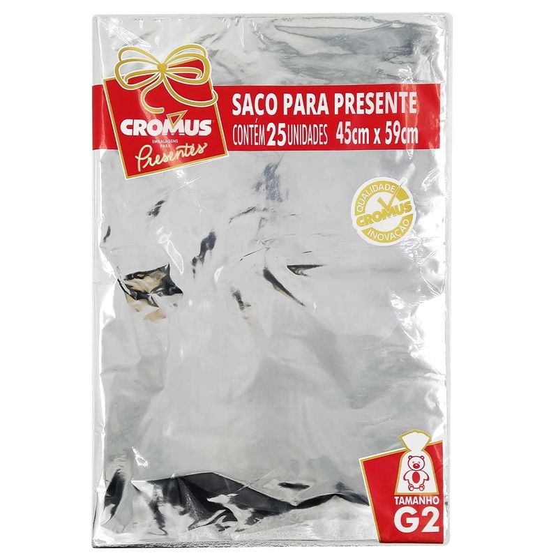 Saco P/ Presente Metálico 45x59cm em Plástico Cromus Embalagens