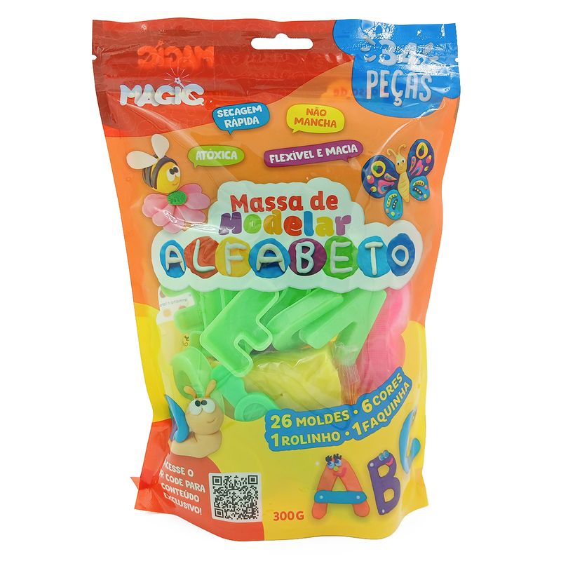 Massa de Modelar Alfabeto 34 Peças em Plástico Magic Kids