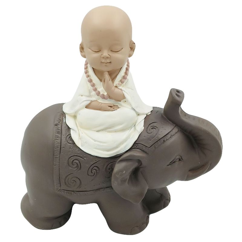Monge no Elefante 17,5x18cm em Resina Brascontinental