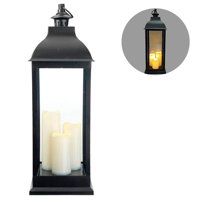 Lanterna - Decorativa - C/ Led Alimentação 3 Pilhas AA (Não Inclusas) Medidas: 72cm Composição: Plástico e Vidro Cor: Preto Brascontinental Código de Barras: 7899594147092 Peso: 2,10kg Ref: HE470921